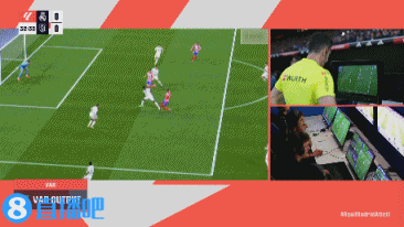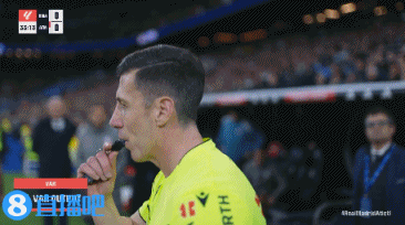 上半场,主裁经VAR提醒后观看回放,判罚琼阿梅尼禁区内踩到利诺,给了马竞点球。