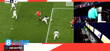 VAR介入,裁判亲自观看回放,卡马文加踩到萨拉戈萨,裁判判罚点球。布迪米尔主罚打进,皇马被扳平。